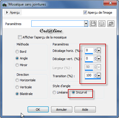 Effet/distorsion/vent direction vers la droite coché/intensité sur 100
