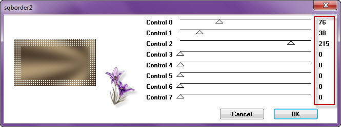 Baisser l’opacité à 75 Fusionner les calques visibles 10. Effet/modules externes/AAA Filters/Foto Frame