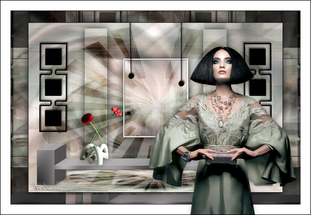 Sélection /transformer la sélection en calque Mettre le calque sur mode Eclaircir Sélection/inverser Appliquer une ombre portée de 0/0/100/40 noir Désélectionner tout Fusionner avec le calque du dessous 28. Activer votre tube_vase_6/édition/copié Edition/collé comme nouveau calque Image /redimensionné à 70% tous les calques décochés Réglage/netteté /netteté Placé sur le banc à gauche Appliquer une ombre portée de 0/0/40/30 noir 29. Image/ajouter une bordure de 2 noir #000000 (n’oubliez pas de coché symétrique) 30. Image/ajouter une bordure de 35 blanc #000000 Activé votre tube Jet-woman25/édition /copié Edition/collé comme nouveau calque Placer comme modèle à droite Appliquer une ombre porté de 0/0 /20/30 noir Image< /ajouter une bordure de 2 couleur noir #000000 31. Signer votre Tag & redimensionné à 1000 pixels de large Enregistrer en JPEG ******************* Voila c’est terminée J’espère que ce tutoriel vous a plu ©Crealine Avril 2012 ******************* Voila c’est terminée J’espère que ce tutoriel vous a plu ©Crealine 14 Avril 2012