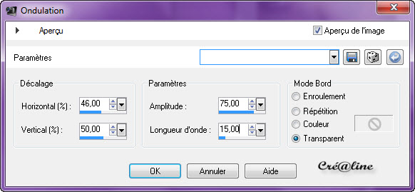 Remplir de la couleur 1 avant plan (foncé) Effet/modules externes /Eyes Candy Impact /Extrude Appliquer le preset extrude_2_Cre@line