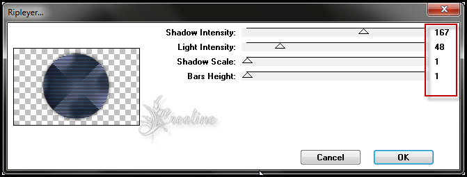 Effet /modules externes/Eyes Candy Impact 5/Glass Appliquer le preset Cre@line_Glass 2 Ou les paramètres dans Basic ci-dessous