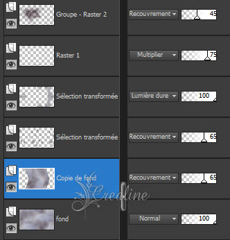 Passez ce calque en mode Recouvrement Baisser l’opacité à 65 7. Repositionnez-vous sur votre fond Calque/dupliquer Image /rotation libre